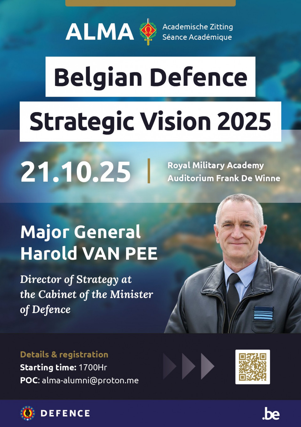 ALMA (Association Licentiates & Masters SSMW/TAW of the Royal Military Academy) has the pleasure to invite you to her yearly academic session which will take place in the Conference hall at the Royal Military Academy on Tuesday 21 October 2025, starting at 1700Hr.